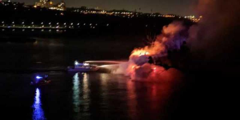 В Киеве на Гидропарке загорелось плавучее кафе